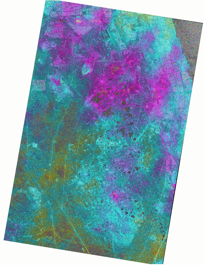 Los interferogramas se utilizan habitualmente para extraer la elevación topográfica y la deformación de la superficie de la Tierra, y se crean utilizando al menos dos imágenes diferentes en fechas distintas. El Interferograma plano de Sensor cruzado se obtuvo desde un par de imágenes mezcladas con una separación temporal de 4 días, adquiridas por los satélites TerraSAR-X y PAZ (modo StripMap desde 22 al 26 de noviembre de 2018). El área abarca la zona de producción de crudo y gas de Burgan (Kuwait) así como partes del Golfo Pérsico. Este campo de petróleo de arenisca es el mayor en el mundo con una superficie total de 1,000 km2.