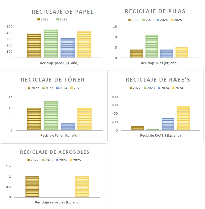 A continuación, mostramos de forma gráfica los volúmenes de residuos reciclados en su comparativa con los años anteriores: