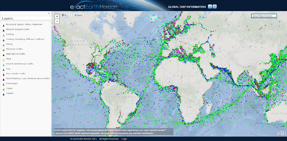 exactEarth is a leading provider of global maritime vessel data for ship tracking and maritime situational awareness solutions. Since its establishment in 2009, exactEarth has pioneered a powerful new method of maritime surveillance called Satellite-AIS (“S-AIS”) and has delivered to its clients a view of maritime behaviours across all regions of the world’s oceans unrestricted by terrestrial limitations. exactEarth has deployed an operational data processing supply chain involving a constellation of satellites, receiving ground stations, patented decoding algorithms and advanced “big data” processing and distribution facilities. This ground-breaking system provides a comprehensive picture of the location of AIS equipped maritime vessels throughout the world and allows exactEarth to deliver data and information services characterized by high performance, reliability, security and simplicity to large international markets. For more information, visit exactearth.com.