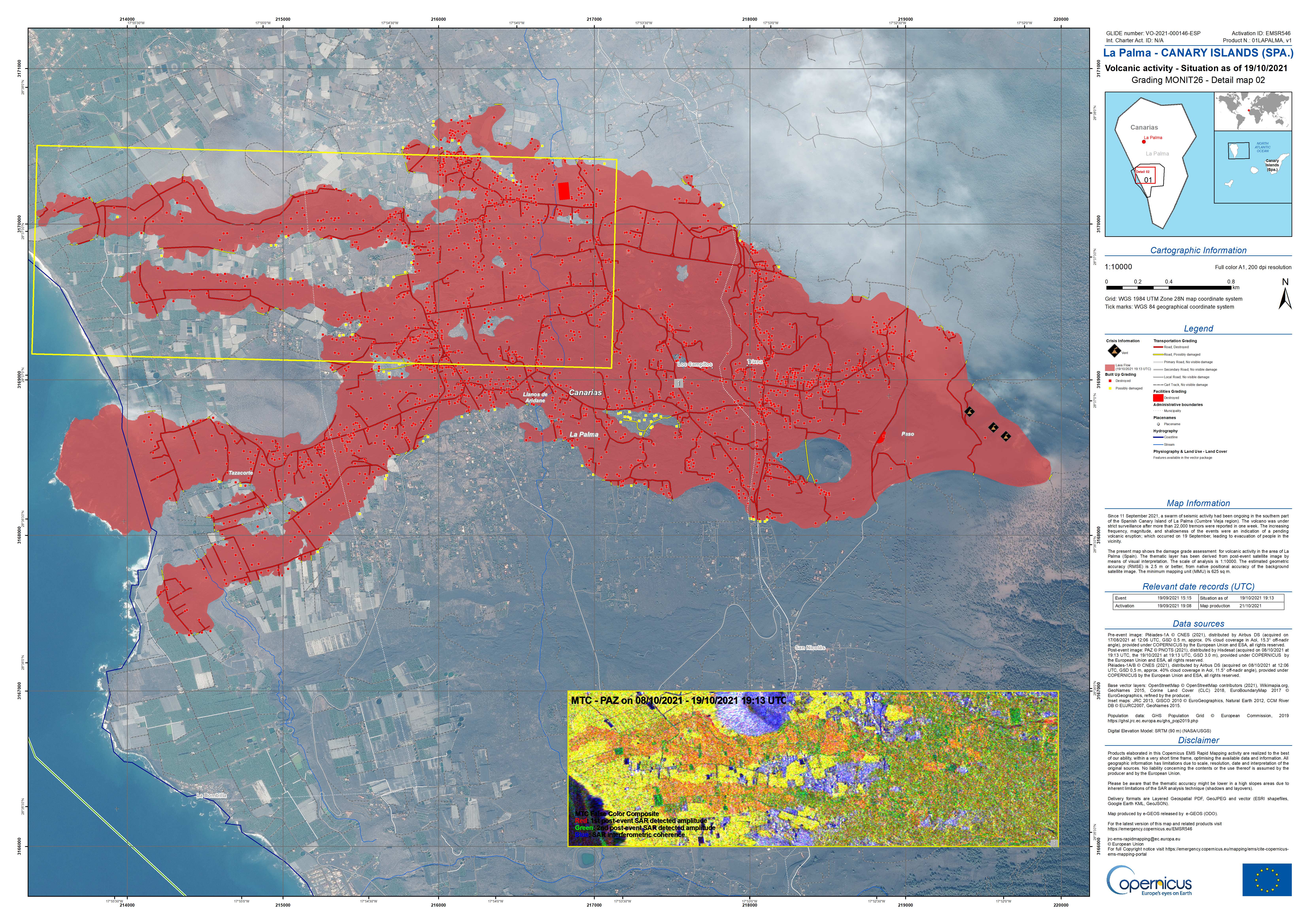 Recientemente, Copernicus ha publicado mapas de la zona, utilizando las imágenes del satélite PAZ de Hisdesat: https://emergency.copernicus.eu/mapping/system/files/components/EMSR546_AOI01_GRA_MONIT26_r1_RTP02_v1.jpg